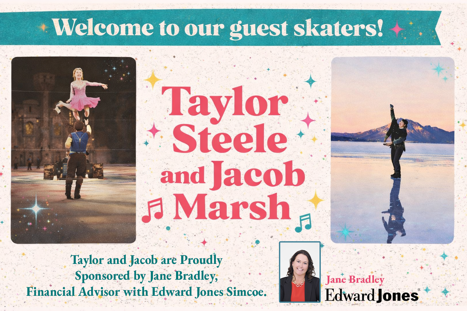 We would also like to extend a sincere thank you to Jane Bradley, Financial Advisor with Edward Jones Simcoe, for proudly sponsoring Taylor and Jacob’s appearance. Support from community partners like Jane helps make opportunities like this possible for our skaters and audience.